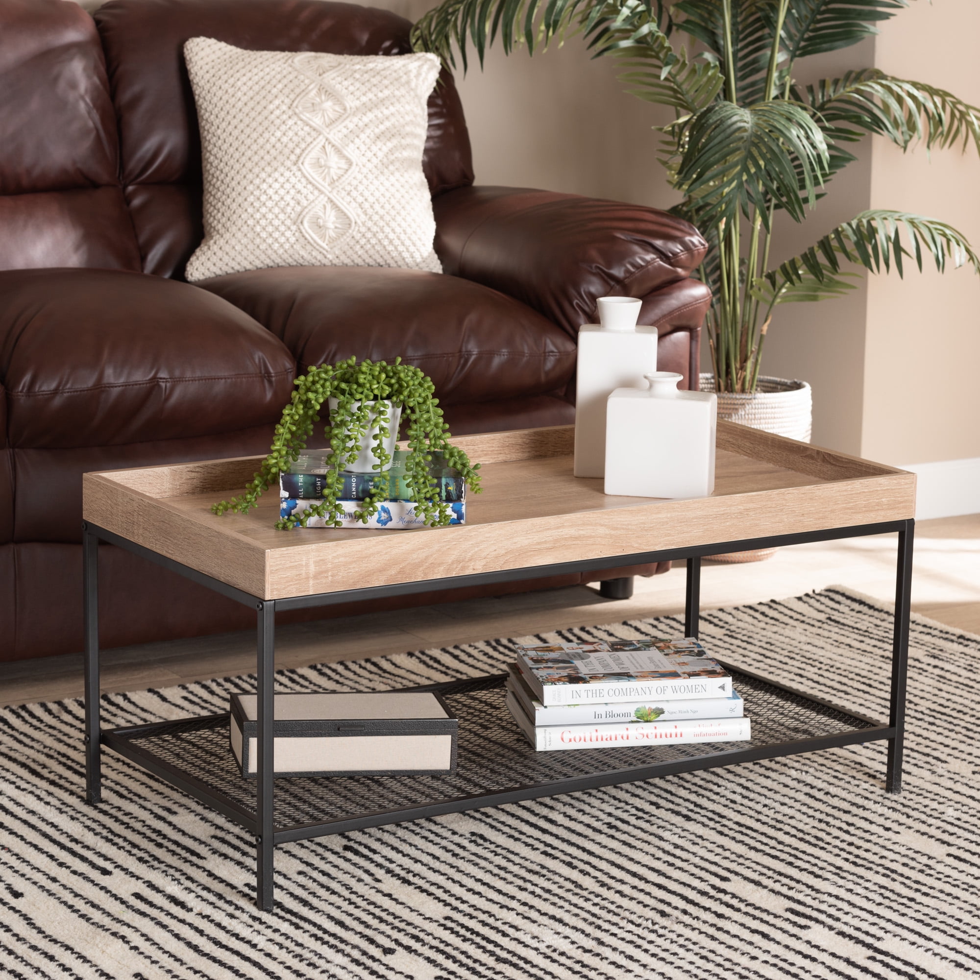 Baxton Studio Overton Modern Industrial Oak Brown Finished Wood And Black Metal Coffee Table Walmart Com